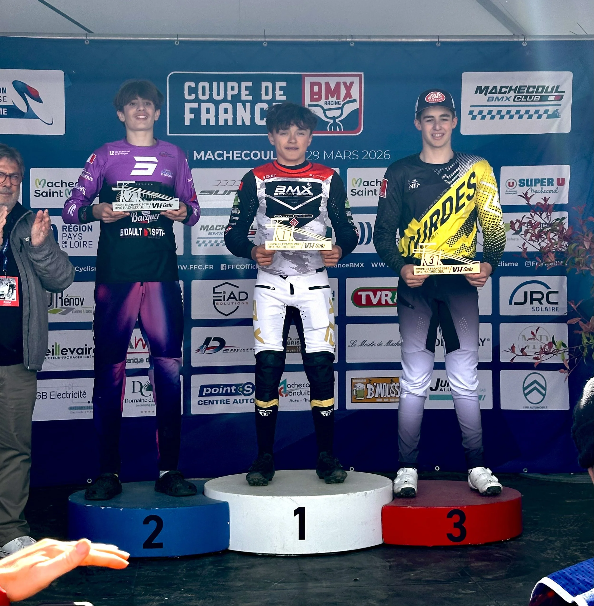 Les 28 et 29 mars 2026 s’est déroulée la première Coupe de France BMX de la saison à Machecoul, en Loire-Atlantique. Sept pilotes de la section BMX de Lourdes VTT, ainsi que cinq pilotes de la DN2 LOURDES BMX étaient engagés pour ce rendez-vous national réunissant les meilleurs pilotes français.