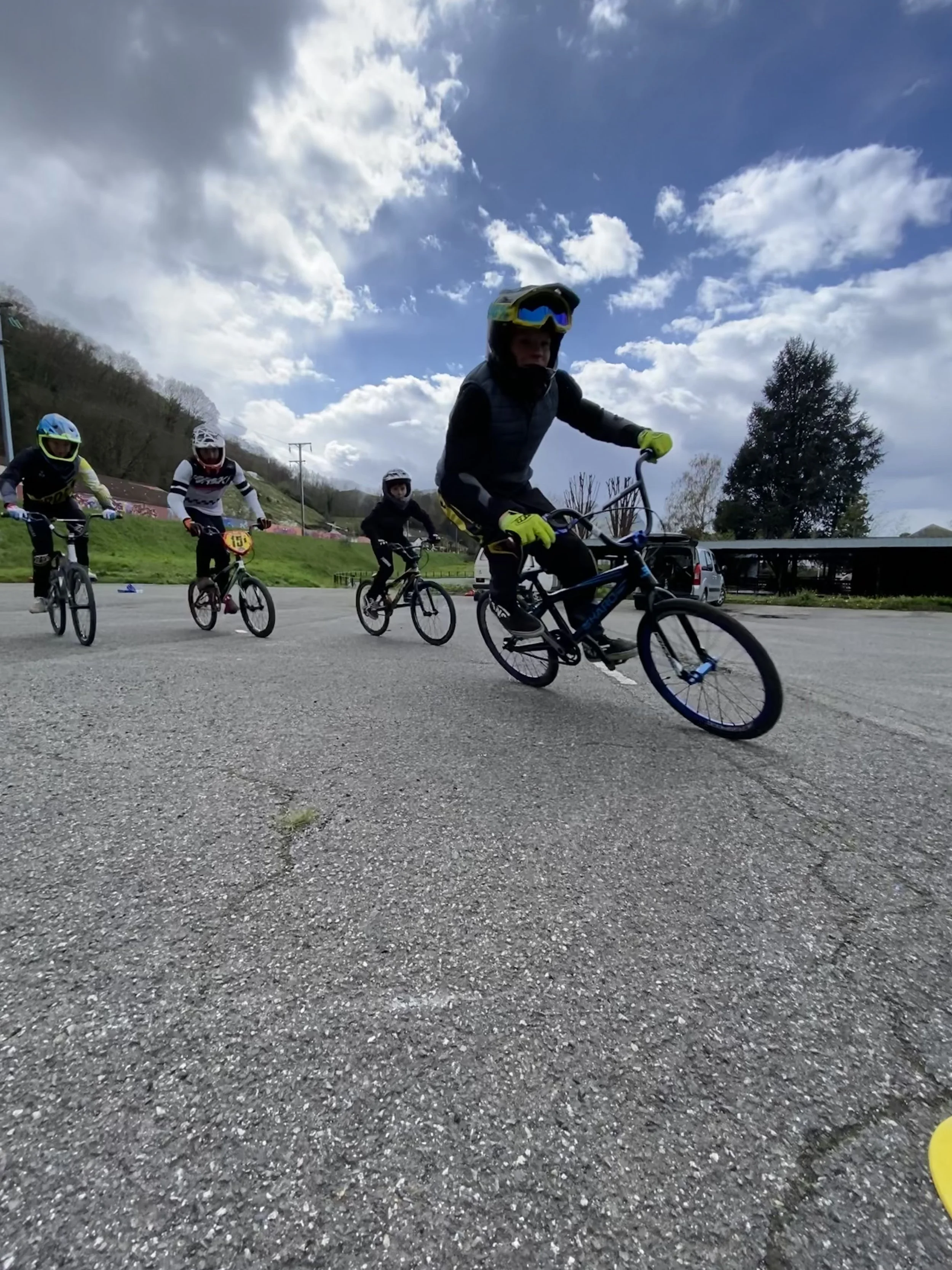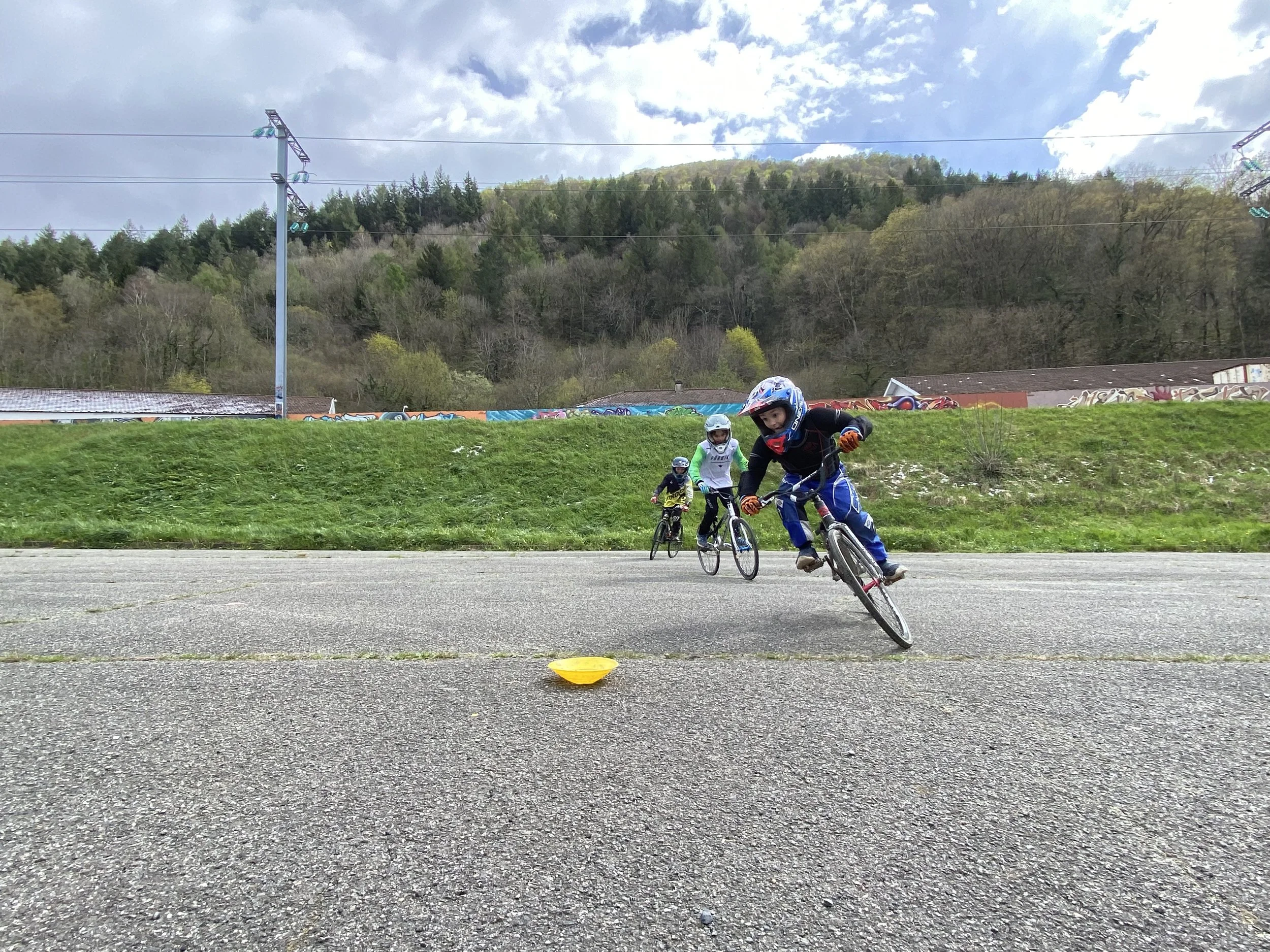 La piste de BMX de Sarsan étant détrempée, 10 jeunes se sont retrouvés pour une séance d’entraînement au sec sur le parking du Tydos.