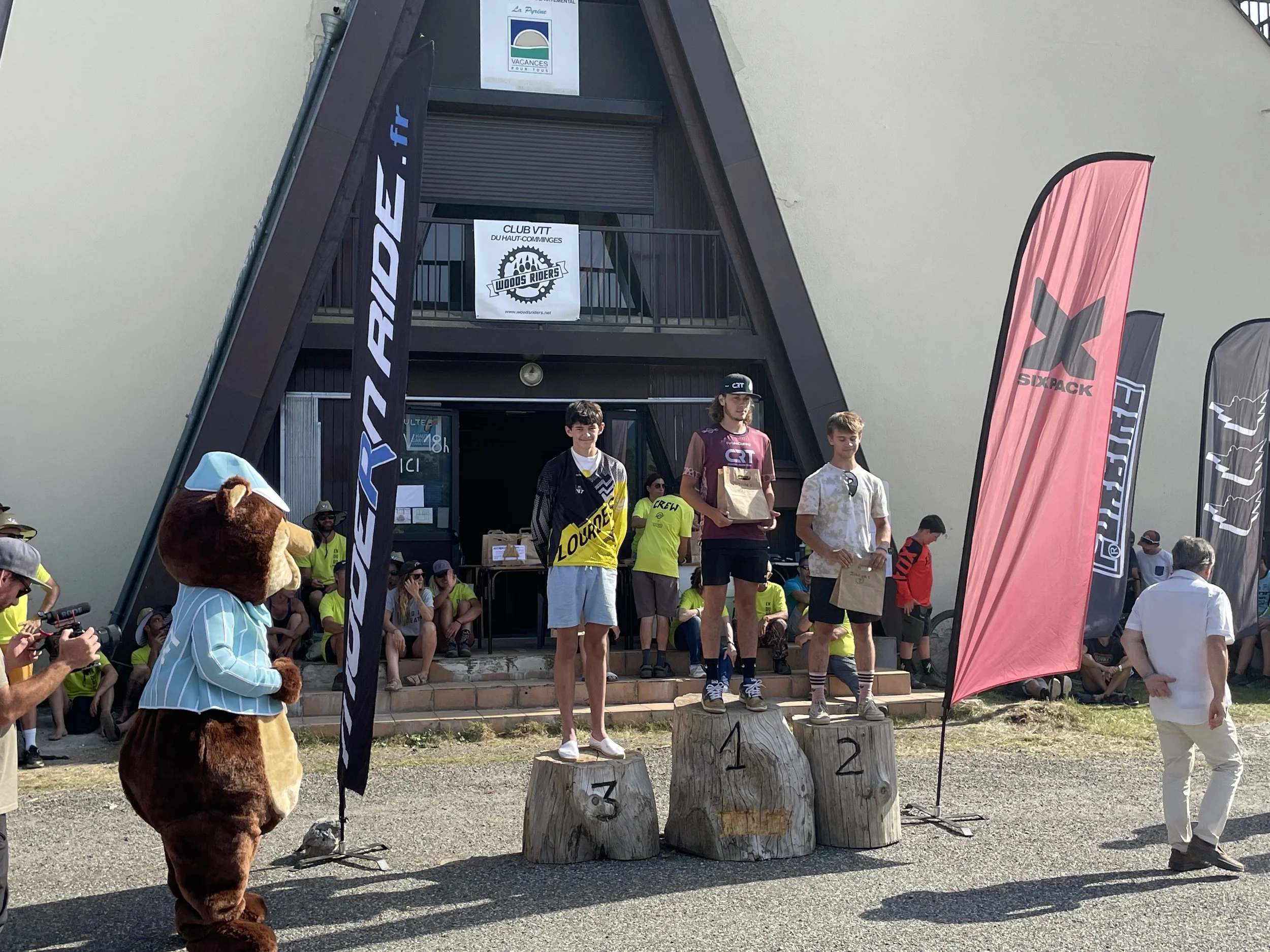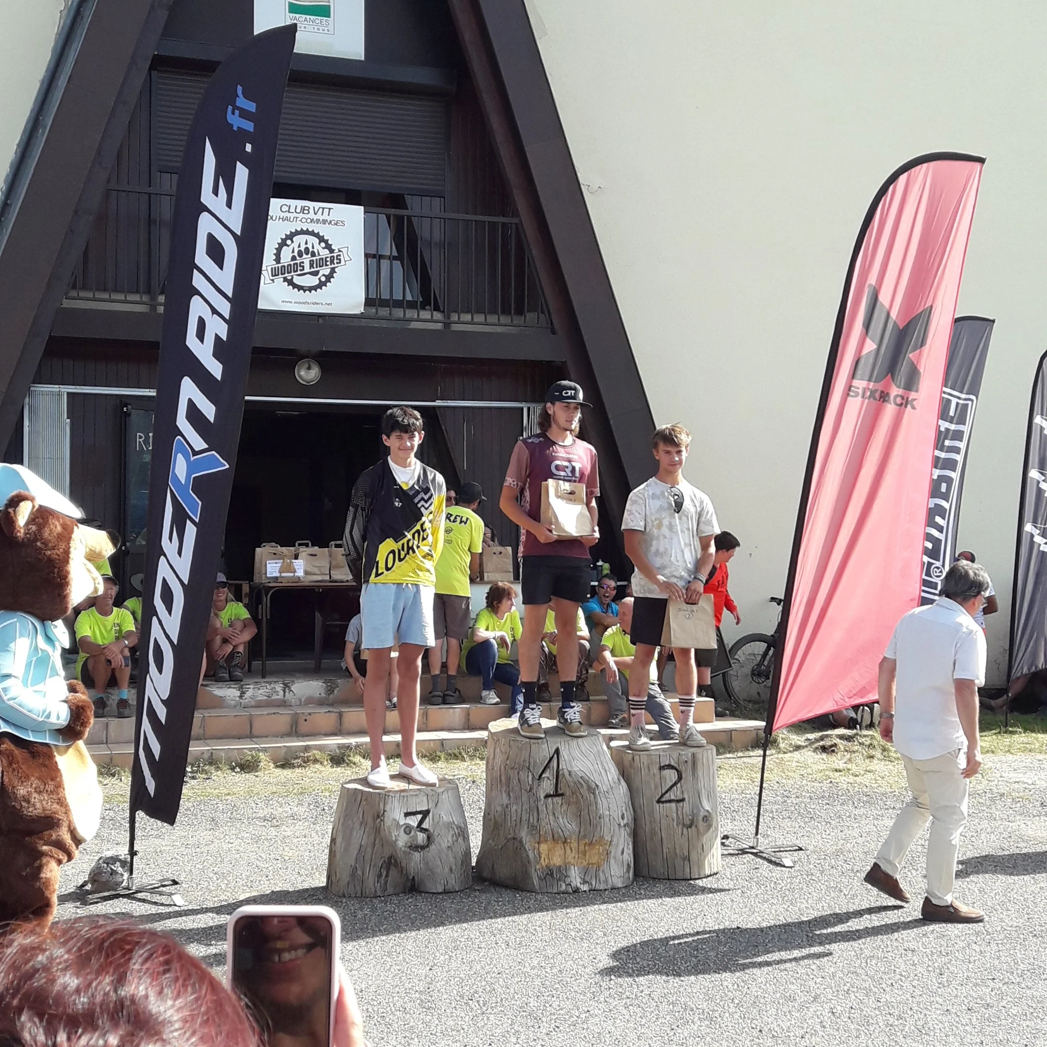 Podium VTTAE scratch avec Mathieu PATORA sur la 3eme marche.