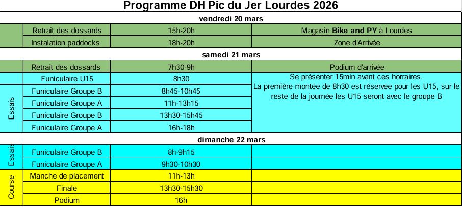 Plan parking et paddock seront communiqués la semaine avant la course.